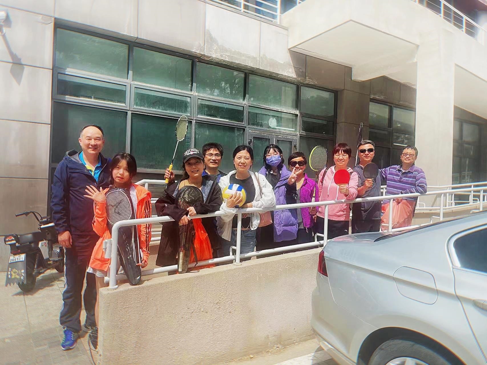 5月的北京,阳光灿烂。借着五一劳动节的闲暇时光和欢乐氛围,在校友944肖弘昶的热心张罗下,开高校友运动健康群首次欢聚在北京科技大学体育馆,开展羽毛球、乒乓球、排球等项目的高手展演和友谊交流。活动前后,校友们积极主动,各显身手,自发做好各项准备。944肖弘昶预定场地,和943宋敏一起准备羽毛球,912王舸提前专业熏球,871蒋跃红还贴心亲手烤制了补充能量的小蛋糕……活动一开始就充满了友爱和期待。陆续